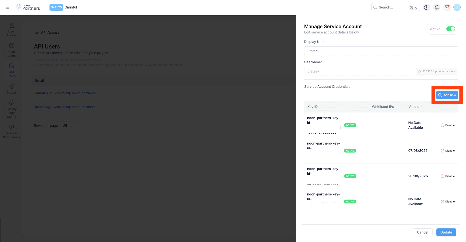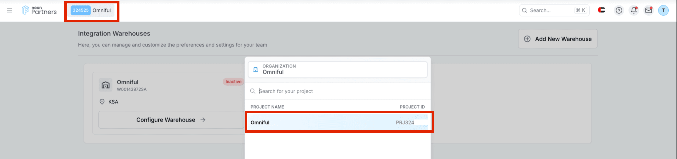 - Project ID: copy and paste here from your Noon Dashboard > Organisation Name > Project