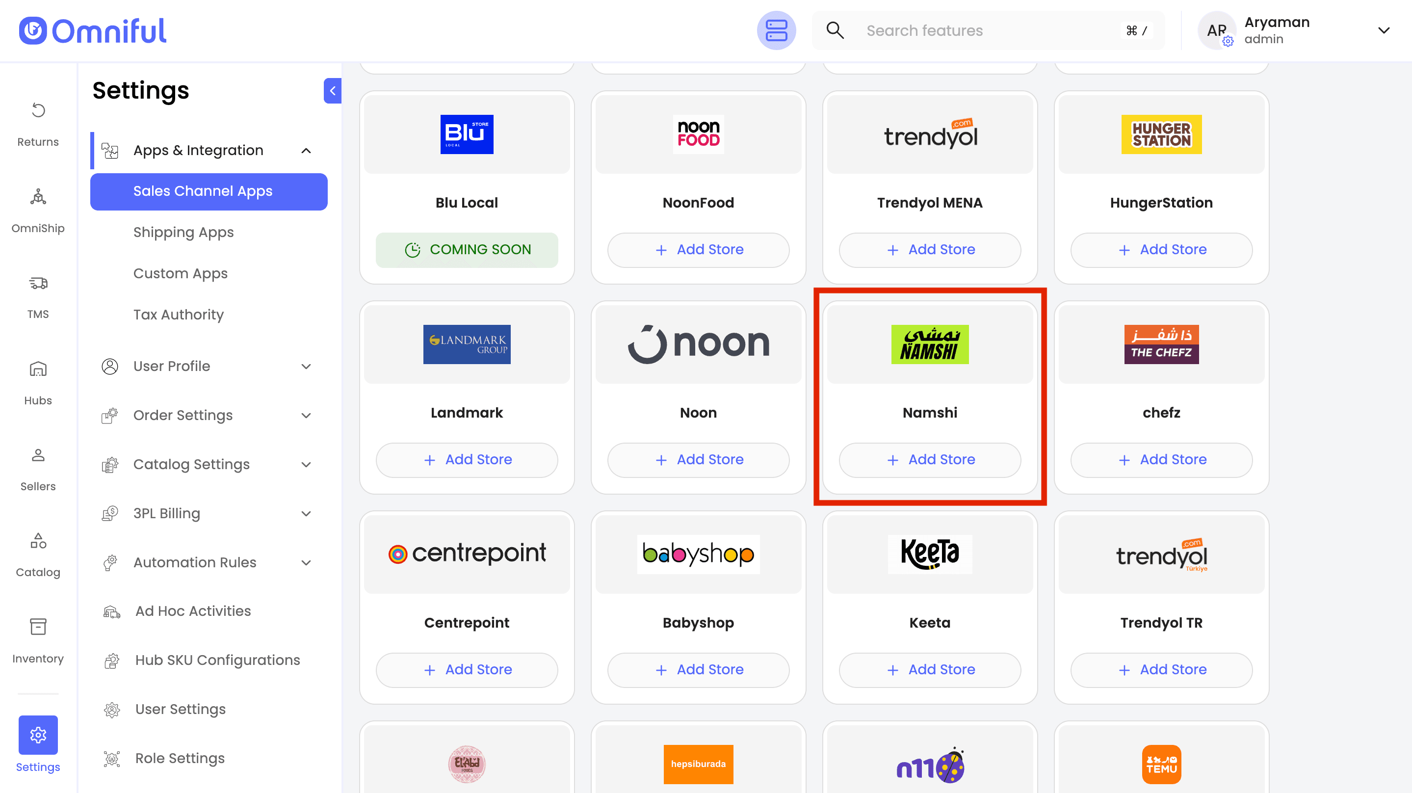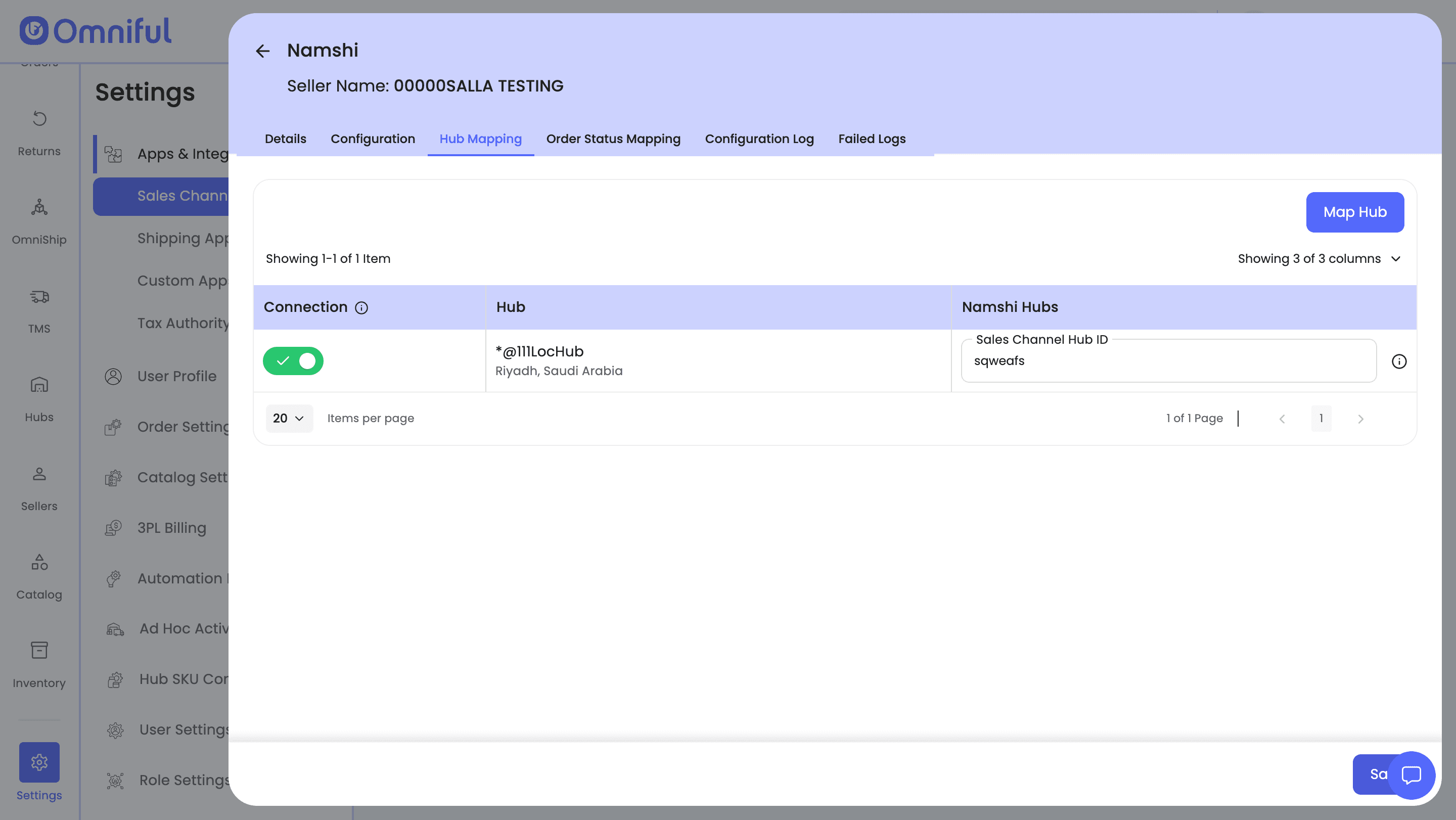 - Map Omniful Hubs to the hubs configured in Namshi.