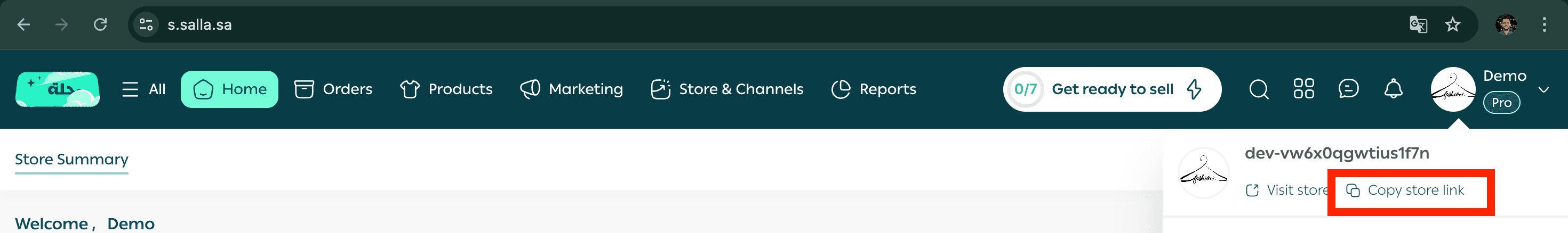 - Access to the email inbox associated with the Salla store (to receive the activation code). This email can be found at Salla Dashboard > Profile