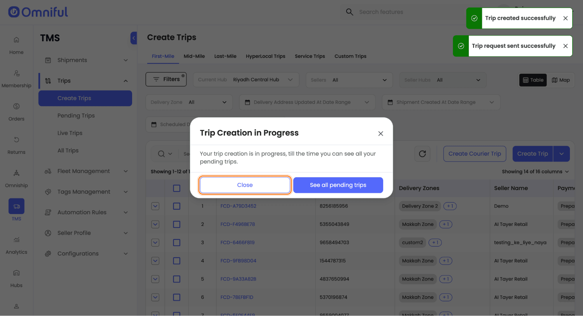 This release introduces a streamlined Trip Creation experience in Omniful TMS, allowing flexible resource assignment and package handling in any order, with updated lifecycle handling for driver notifications.