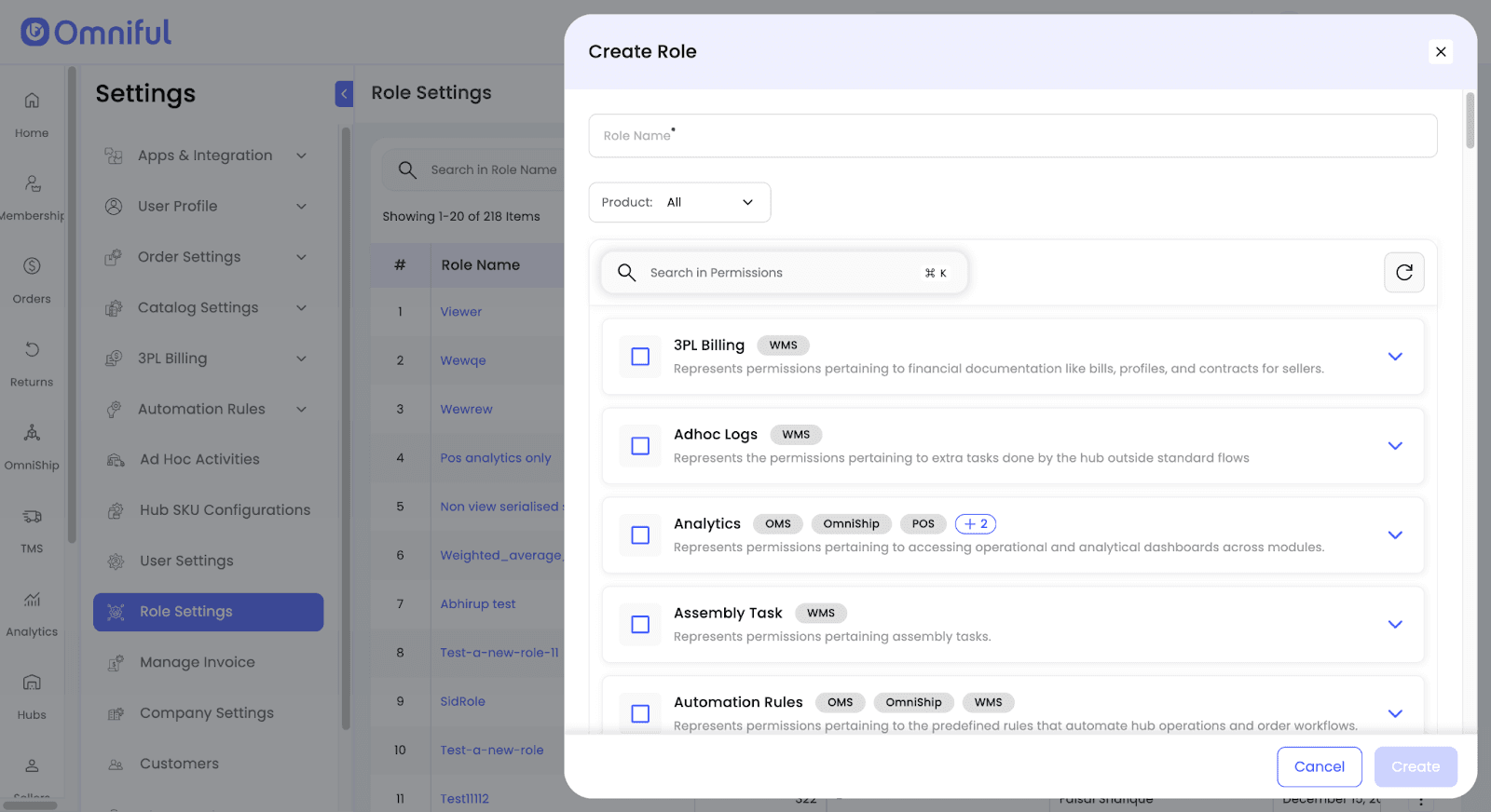 - Product tags on each permission group to show which Omniful products (OMS, WMS, TMS, POS, OmniShip) are impacted.
