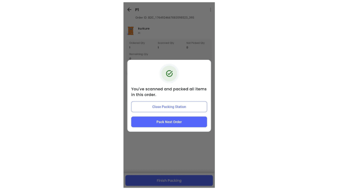 - Packing station usage depends on the Packing Station configuration enabled on the dashboard.