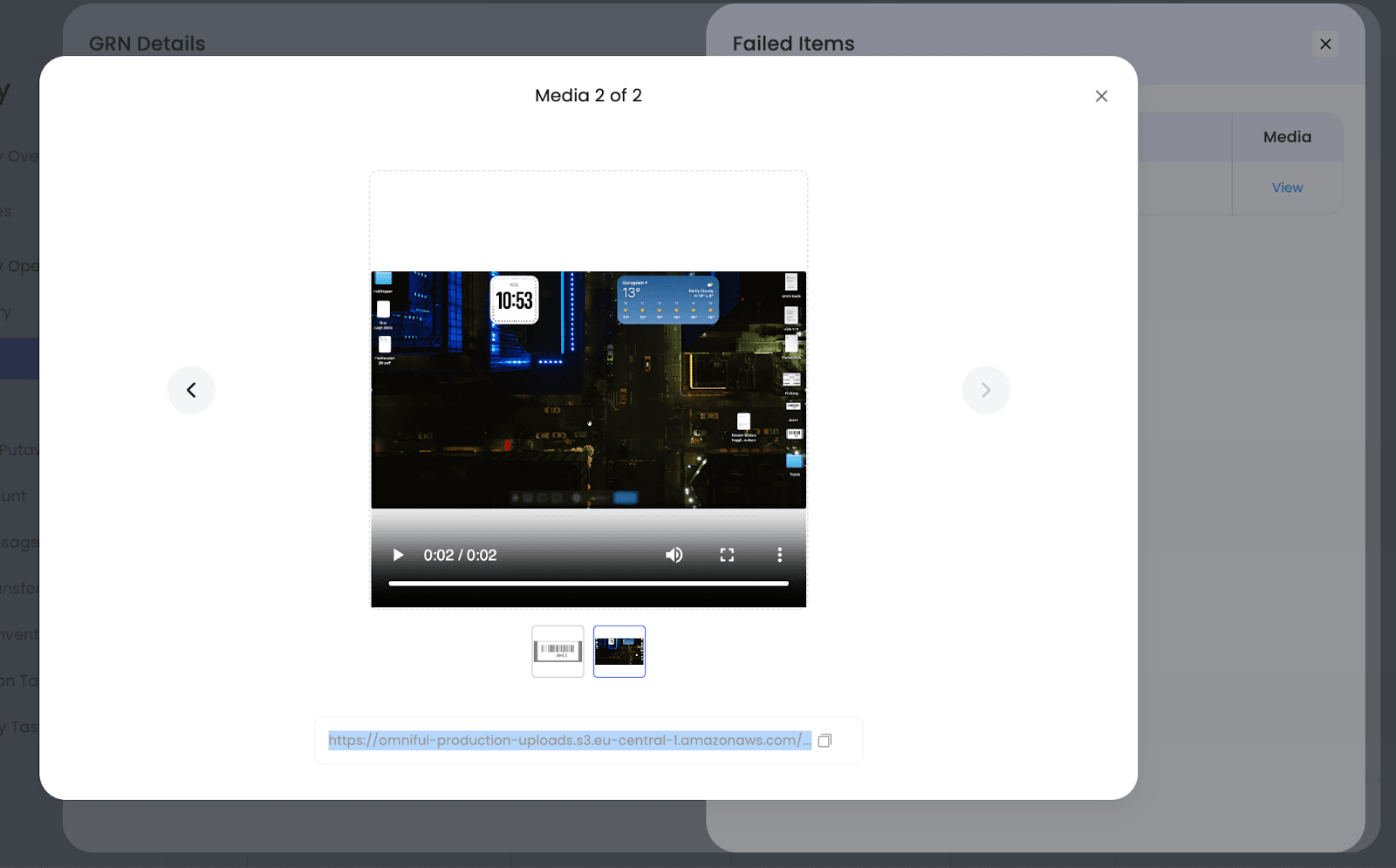 Omniful provides a shareable link for every uploaded video, allowing users to share or download the video when required. The video link appears directly below the video preview, making it easy to copy or download for audits, reviews, or external communication.